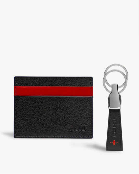 Neo Card Holder + Key Ring Gift Set - Black / Red