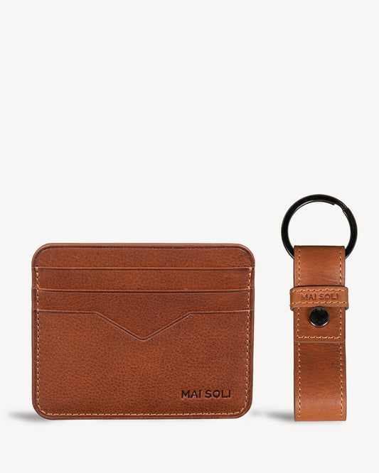 Dark Vintage Bi-Fold Wallet + Key Ring Gift Set- Brown