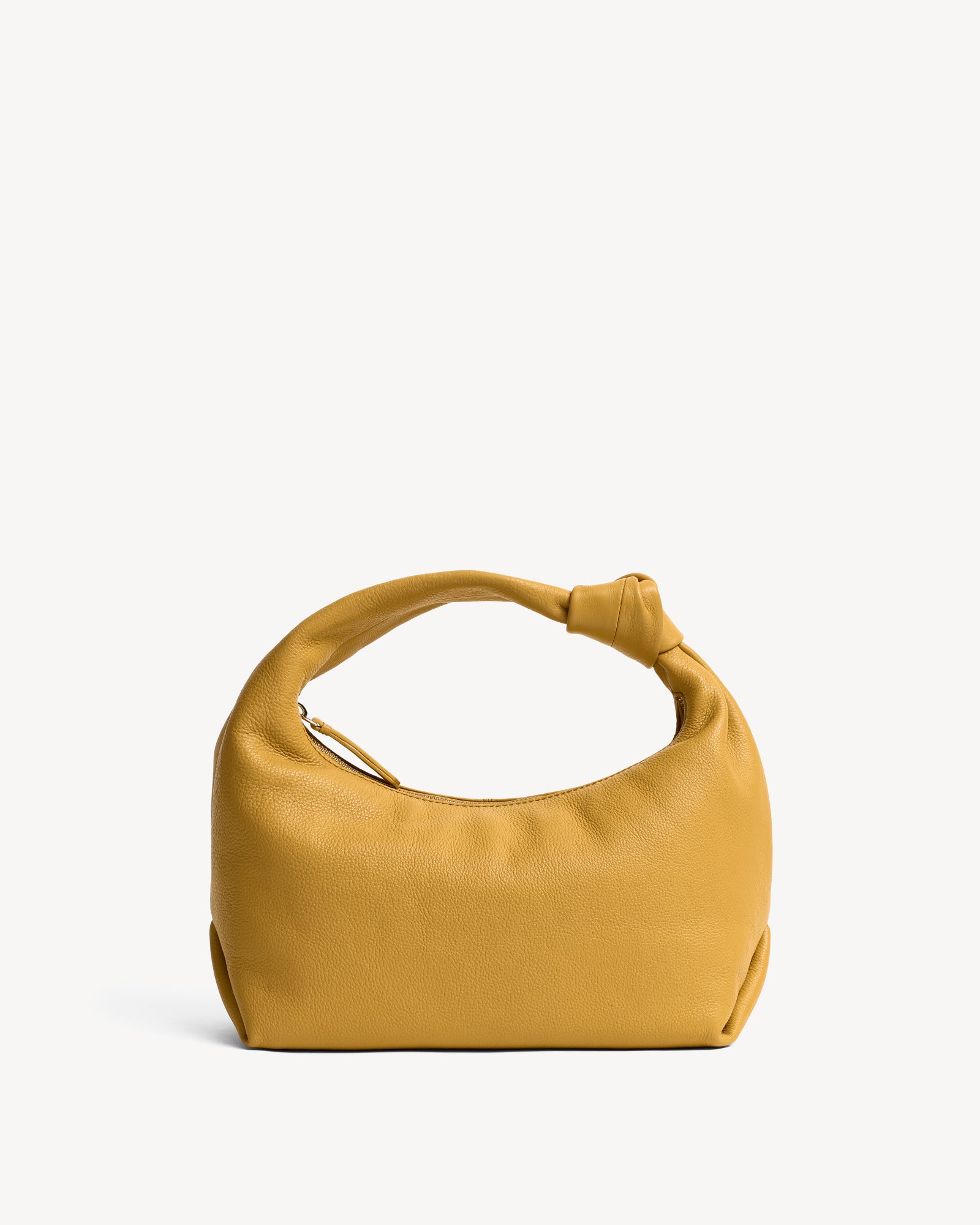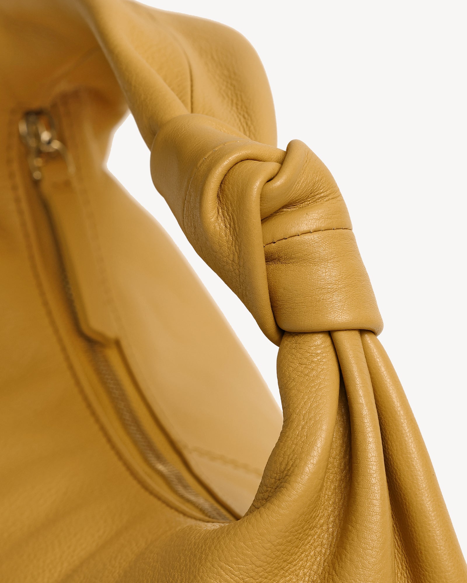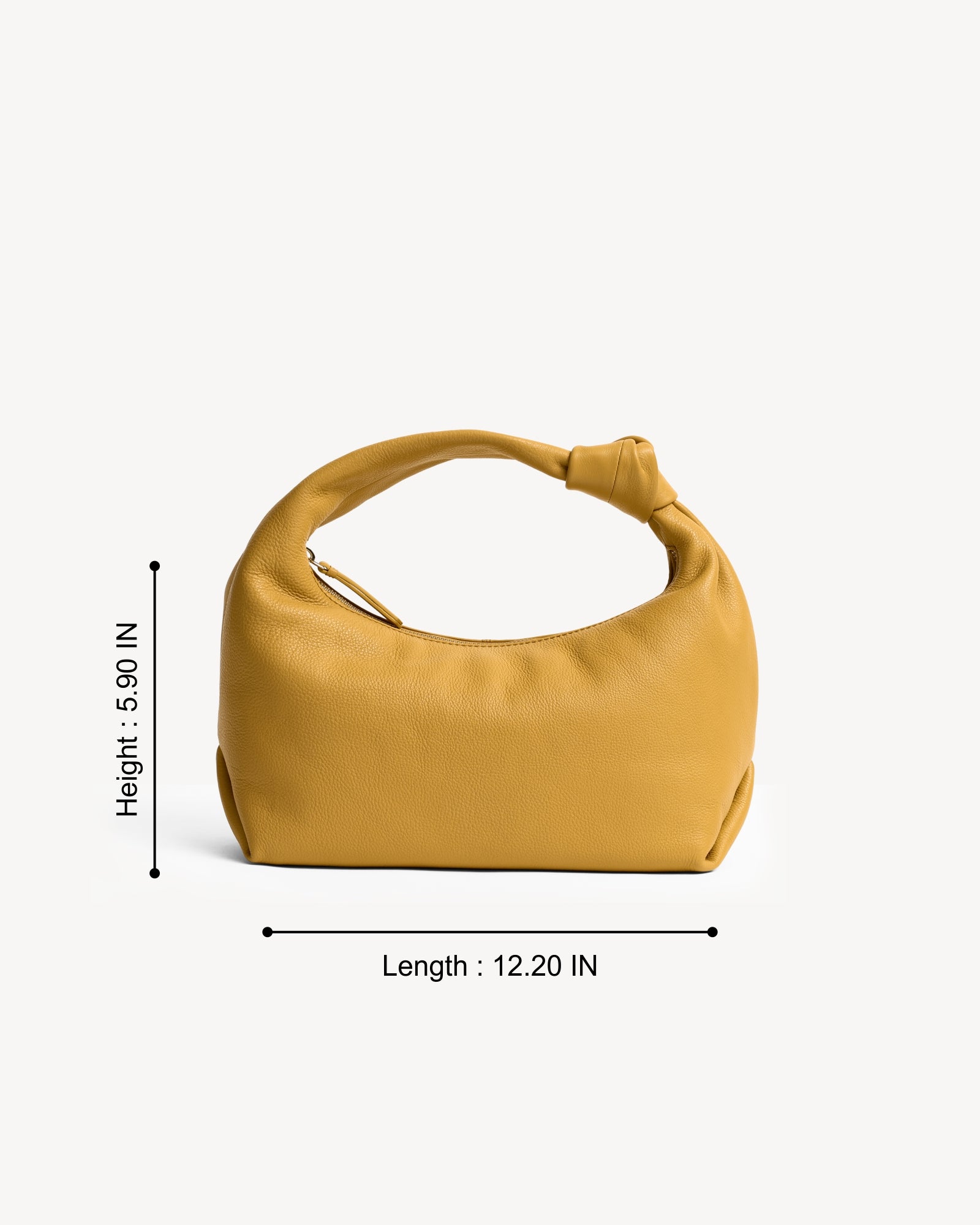 Crafted from full-grain leather with a soft Nappa finish, this bag invites a second glance. Clean metal fittings in warm light gold add subtle elegance, while the sleek zip closure keeps essentials secure. An internal slip pocket offers easy access to must-haves, and the chic leather knotted top handle adds a distinctive touch. Effortlessly glamorous yet functional, it’s designed to elevate any look with style and grace.
