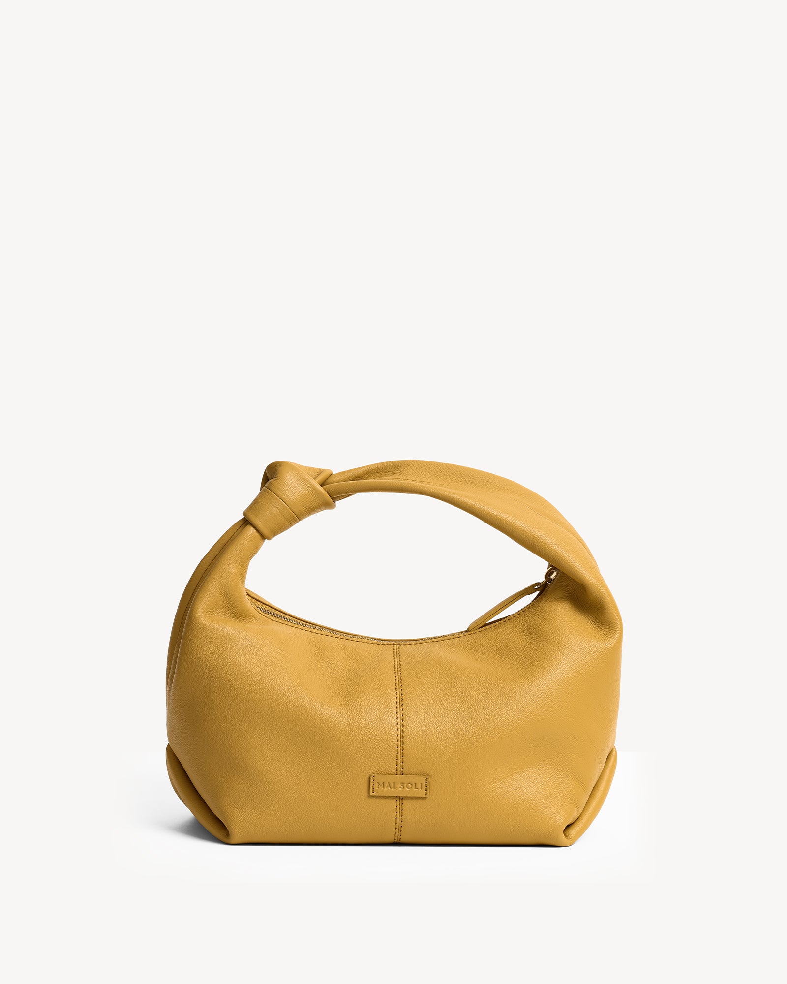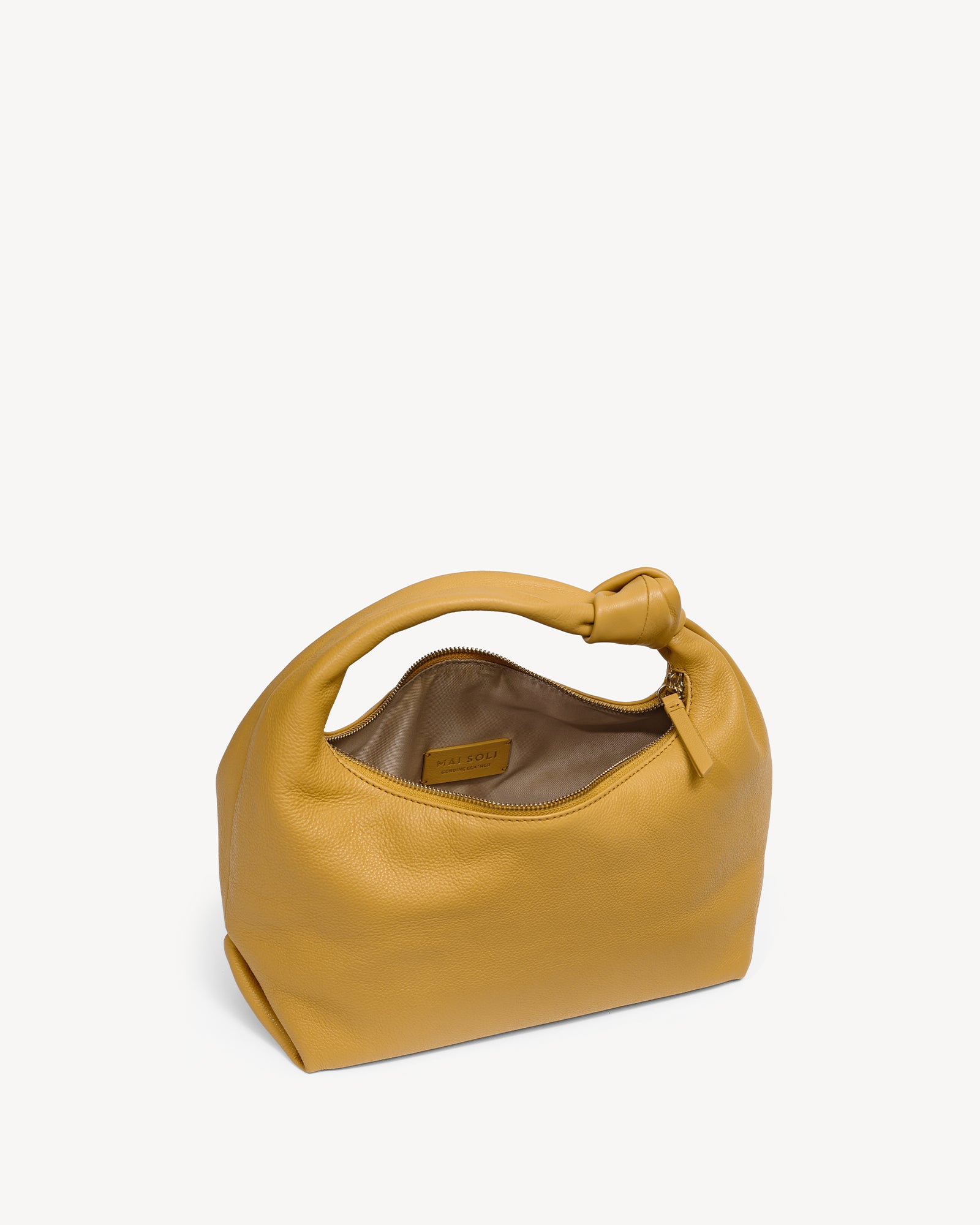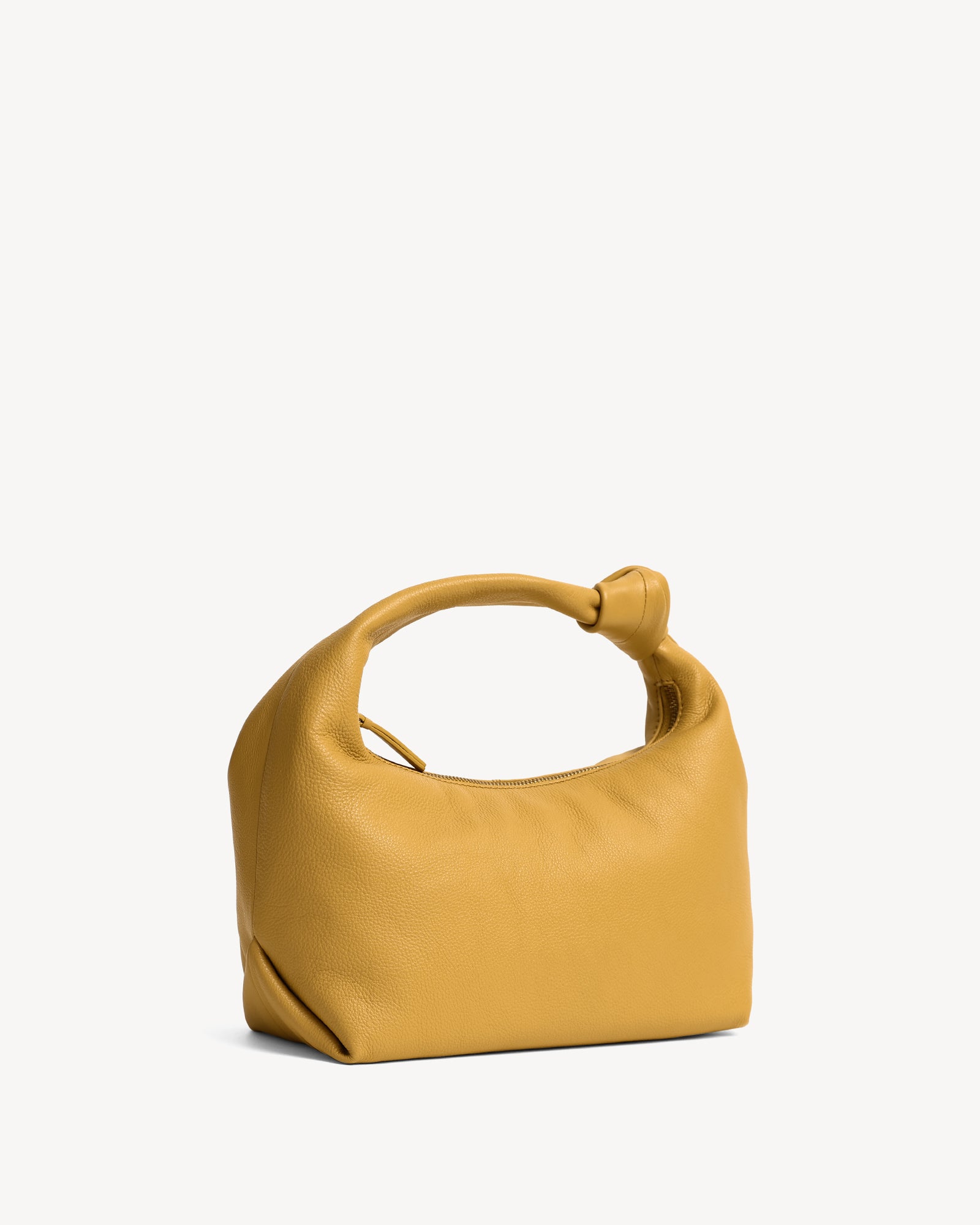 Crafted from full-grain leather with a soft Nappa finish, this bag invites a second glance. Clean metal fittings in warm light gold add subtle elegance, while the sleek zip closure keeps essentials secure. An internal slip pocket offers easy access to must-haves, and the chic leather knotted top handle adds a distinctive touch. Effortlessly glamorous yet functional, it’s designed to elevate any look with style and grace.