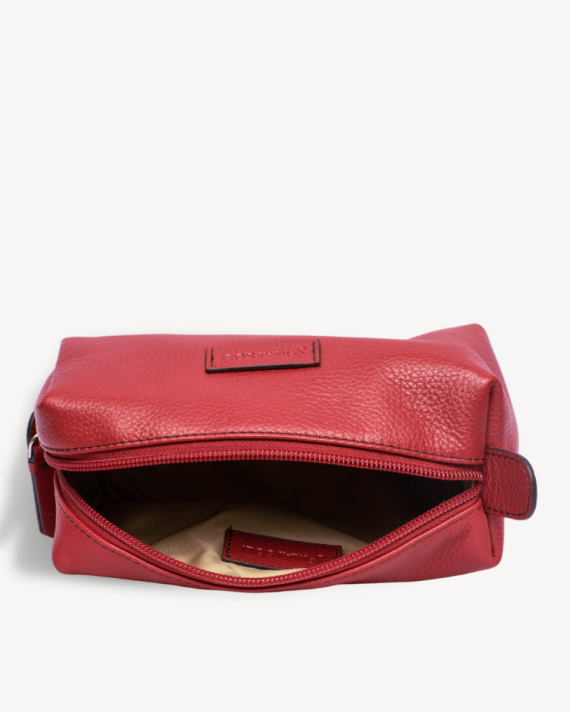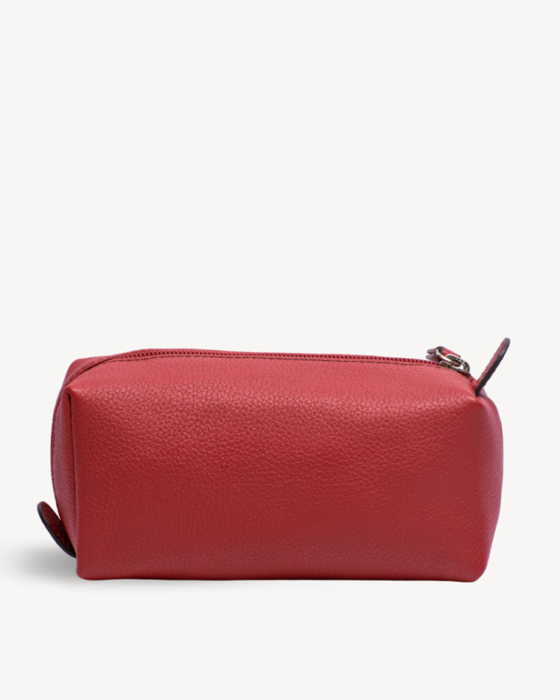 A square shaped make-up bag handcrafted from the finest full-grain leather and secured with a top zip closure. This compact travel pouch provides ample space to store your cosmetics, make-up brushes, toiletries, medicines and other small essentials on the go.